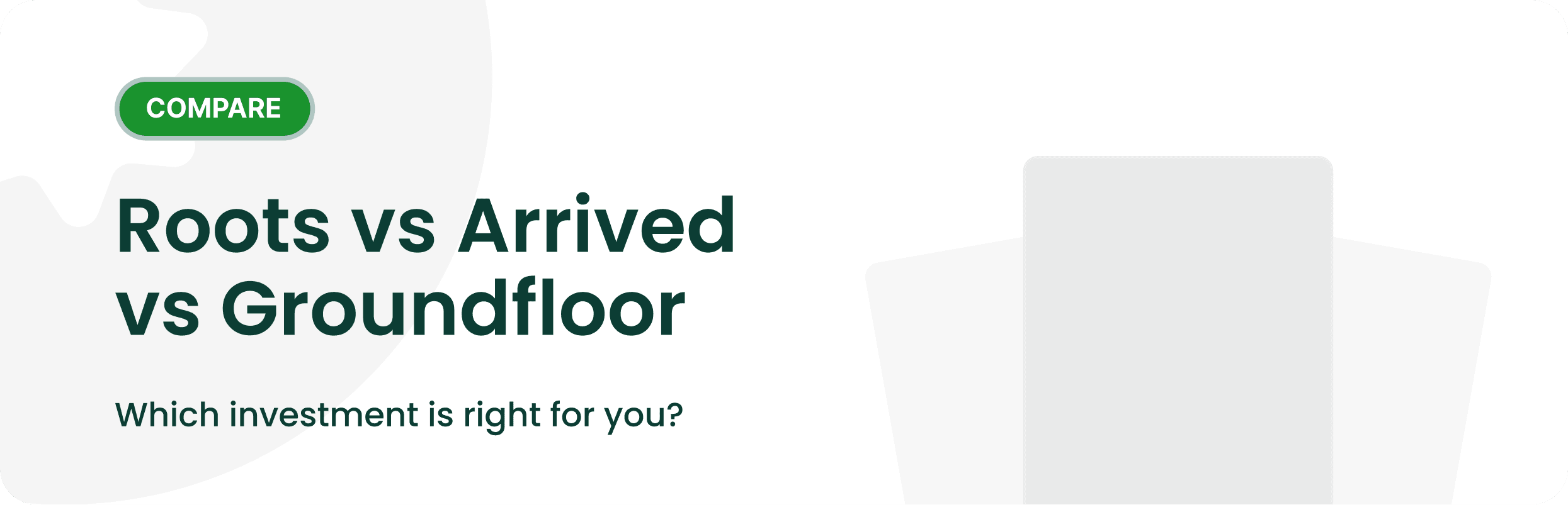 Below you'll find an in-depth breakdown of Roots, Arrived's Single Family Residential Fund, and Groundfloor's Flywheel portfolio, highlighting their differences across 4 dimensions: investment type, minimums, liquidity, and social impact.